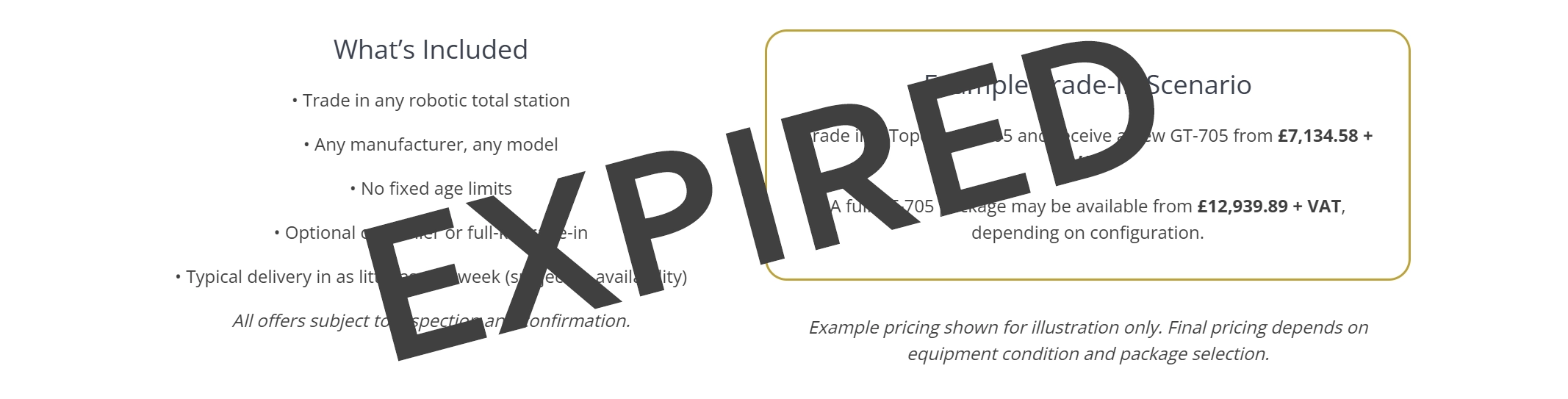 We can still offer you a trade in package on your total station, please contact a member of our team to discuss your requirements.
